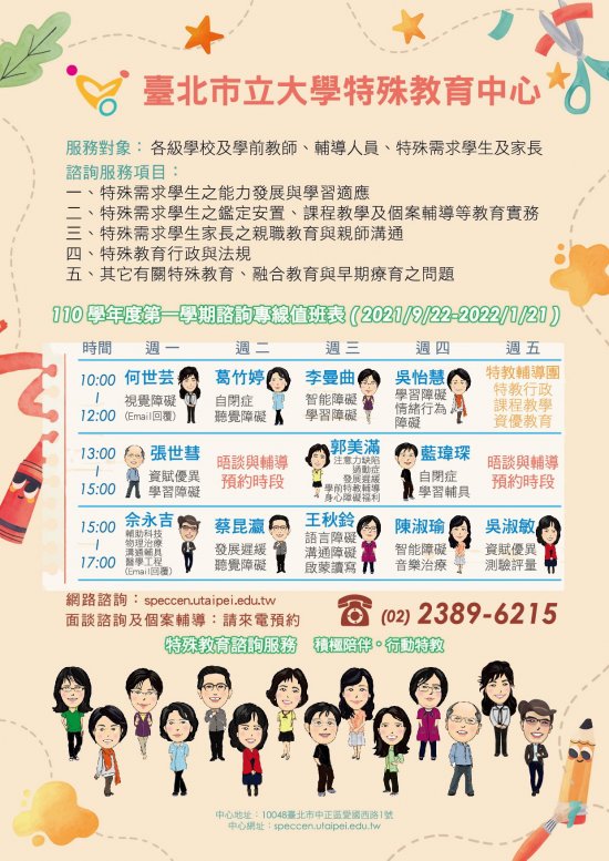 資料如附件,有相關需求之家長及教職員工生請直接與各特教中心聯繫