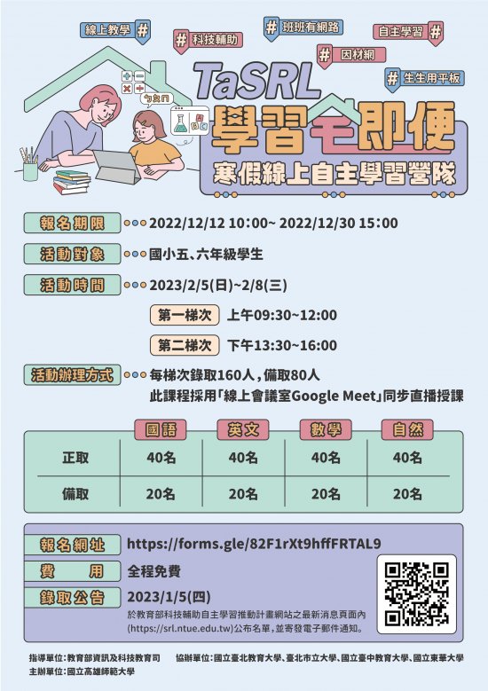 TaSRL學習宅即便─寒假線上自主學習營隊