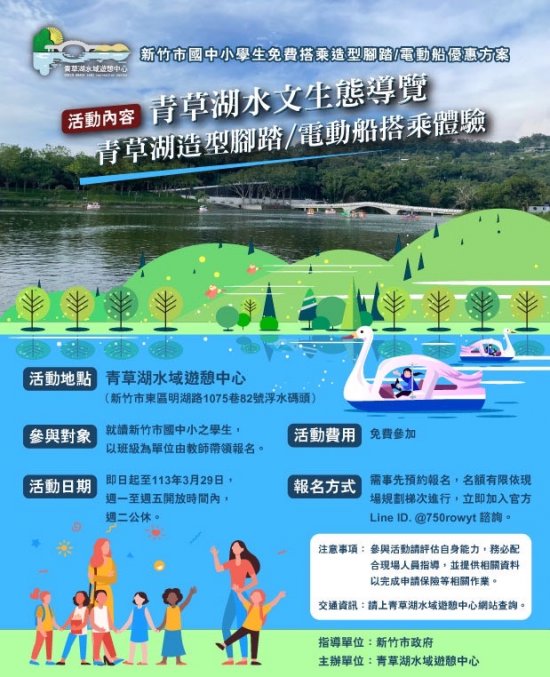 新竹市國中小學生免費搭乘青草湖造型腳踏電動船優惠方案