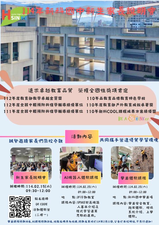 轉知新科國中辦理新生家長說明會