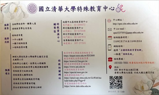 國立清華大學特教中心提供諮詢服務,詳細資訊請見附件。