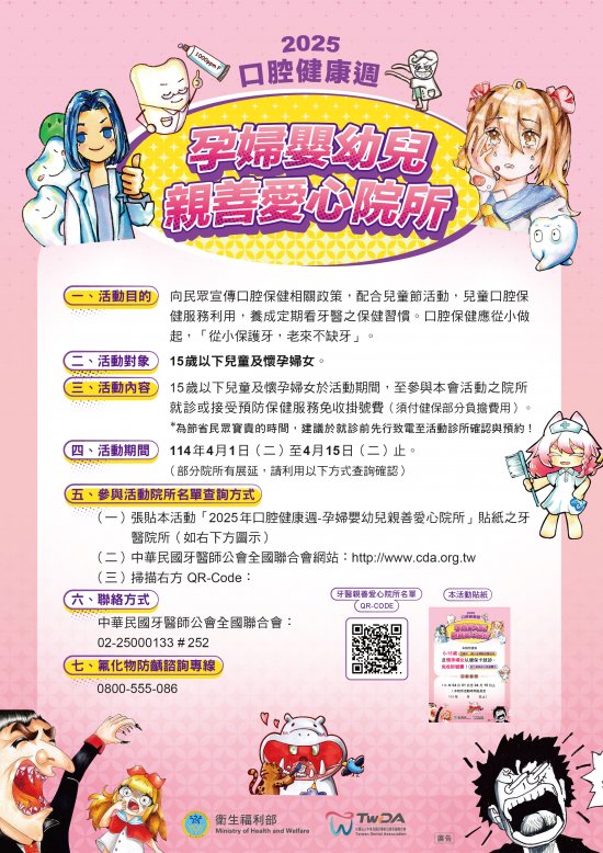 牙醫全聯會為向民眾宣導口腔保健措施,並鼓勵提升口腔保健服務利用,爰辦理旨揭活動,活動資訊如下: