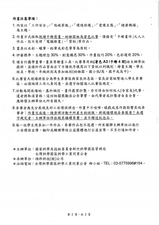 四、比賽主題:工作安全、低碳節能、環境保護、愛護生態及健康職場。