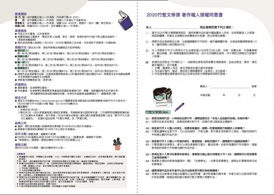 2020竹塹文學獎開始徵文囉!