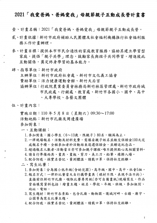 『2021我愛爸媽、爸媽愛我』母親節親子互動課程暨寫生比賽