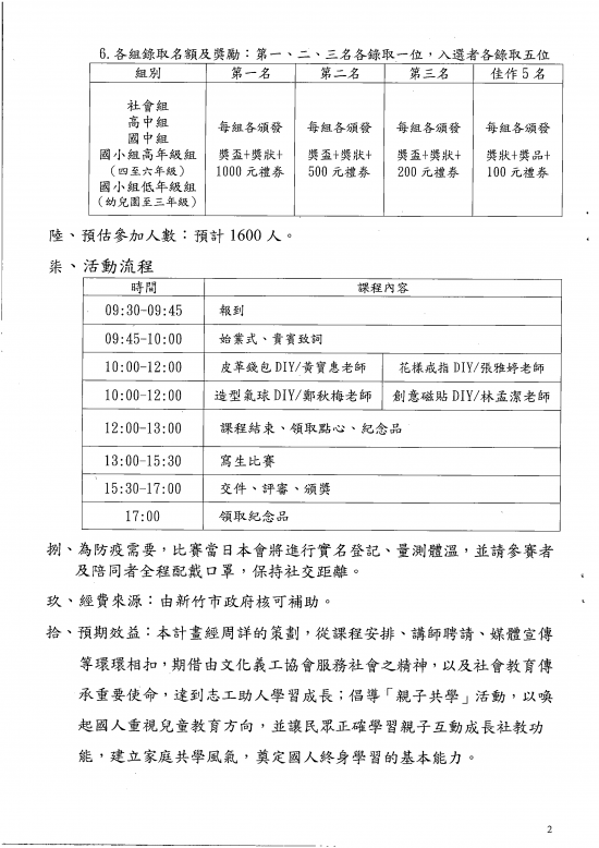 一、目標:新竹市文化義工協會提倡「親子共學」理念,增進彼此互動關係,
